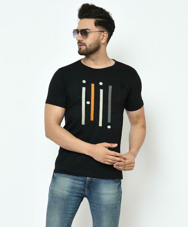 Men Black Printed Cotton Blend Single T-shirt